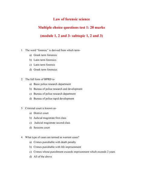 Download forensic science multiple choice questions answers Epub online is a convenient and frugal way to read forensic science multiple choice questions answers you love right from the comfort of your own home. Yes, there sites where you can get Epub "for free" but the ones listed below are clean from viruses and completely legal to use.
